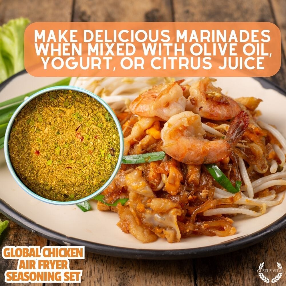 Chicken lovers, unite! This comprehensive 6 pack collection of gourmet seasonings and spice blends are crafted especially for makings globe-trotting chicken from some of the world's most iconic cuisines with air fryers. Our super-premium artisanal seasonings are all natural, made for home cooks who want to elevate their air fried chicken with unique flavors from classic global cuisines. Each gourmet blend is carefully crafted with only the best in sustainably sourced non GMO ingredients, resulting in a perfectly balanced taste that will impress even the most discerning palates.