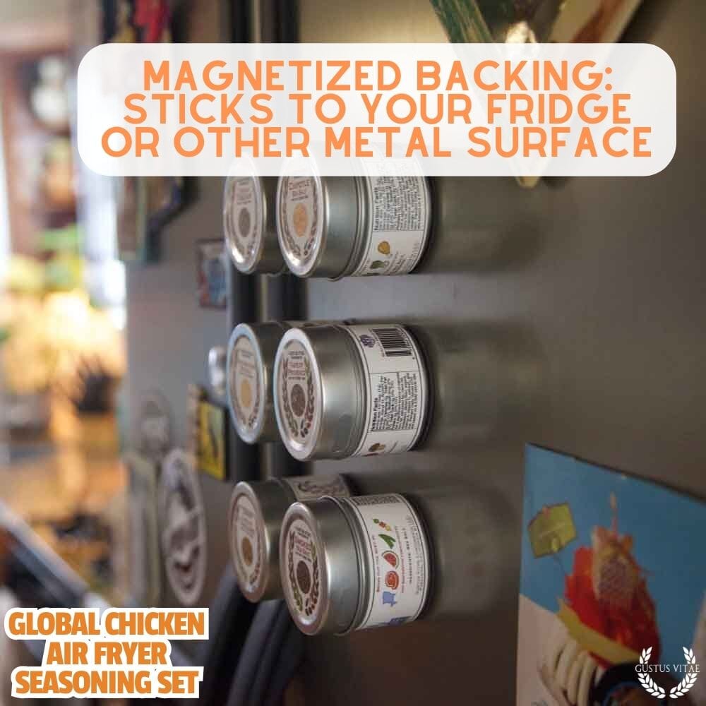 These versatile, easy-to-use spice blends are crafted by hand in small batches, then hand-packed in our unique magnetic tins that stick to most metal surfaces, so your favorite seasoning is always within arm's reach. With these gourmet seasonings, you can easily create a restaurant-worthy meal in the comfort of your own home. Perfect for any occasion, our collection of seasonings will take your air fried chicken to the next level.