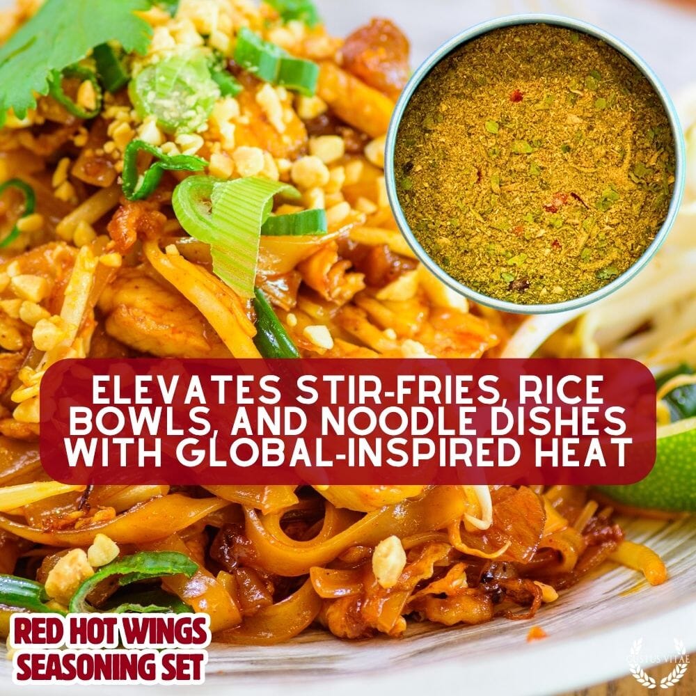 Crafted from only the best in all natural, non GMO, sustainably sourced ingredients, the Red Hot Wings collection is your go-to for unleashing your culinary creativity, and infuse a touch of heat into a wide variety of dishes. From zesty tacos to sizzling stir-fries, from bold burgers to tantalizing dips, these gourmet spice blends are your secret weapon to adding a fiery kick to any recipe. Each blend in this collection is carefully crafted to offer a unique heat profile, from the smoky flavors of the BBQ pit, to the sunny beaches of Thailand, ensuring that every bite is a burst of intense flavor.