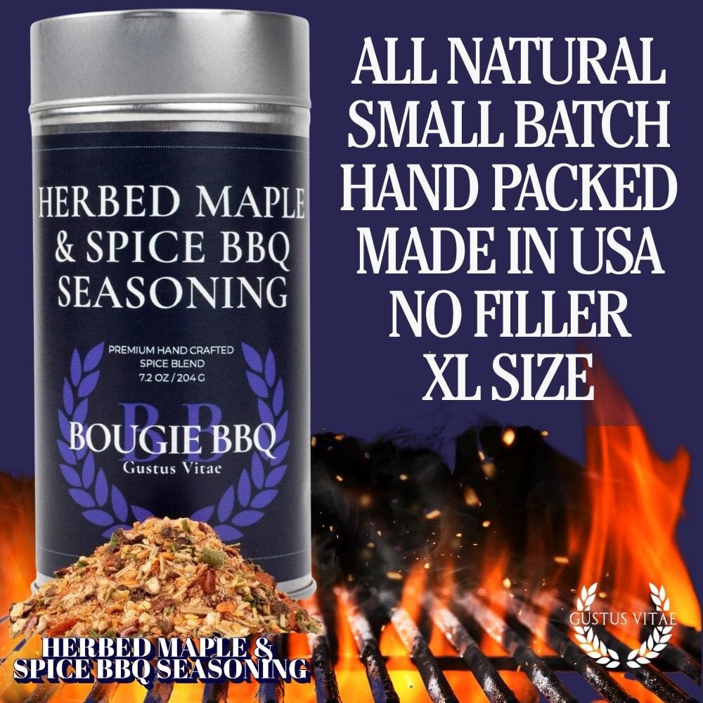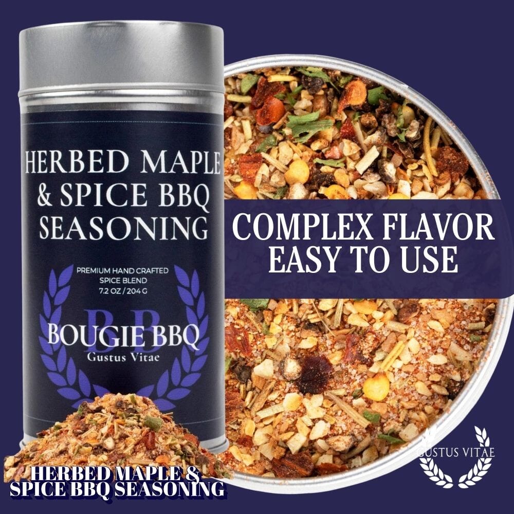 This gourmet seasoning, free from MSG, excessive amounts of sodium, artificial colors and flavors, fillers, and anti-caking agents, is made with only the best in sustainably sourced natural ingredients you can pronounce. Crafted in small batches and packed by hand, our Herbed Maple & Spice BBQ Seasoning brings out the best in big cuts, whole racks, thick steaks, and juicy burgers.
