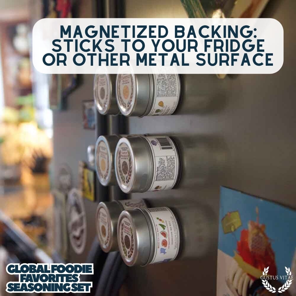 • Magnetized backing: 4oz tins sticks to your fridge or other metal surfaces.