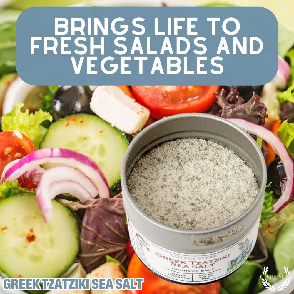 We've captured the all-natural soul of tzatziki and carefully combined it with our California sea salt to bring you this: Greek Tzatziki Sea Salt. A fitting tribute to the Grecian isles, this sea salt brings wonderful flavor to vegetables, fresh salads, chicken and white fish, and authentically delivers all of the very best flavors of the taverna. Made with only the highest quality sustainable ingredients, just a few shakes of this sea salt lend a dilly, mellow flavor to whatever you're enjoying, all without the mess and fuss of yogurt. In addition to all the uses that you might think of, we're especially partial to this on eggs in the morning, or as a light dusting on cheeses like feta when preparing a appetizer plate when entertaining.
