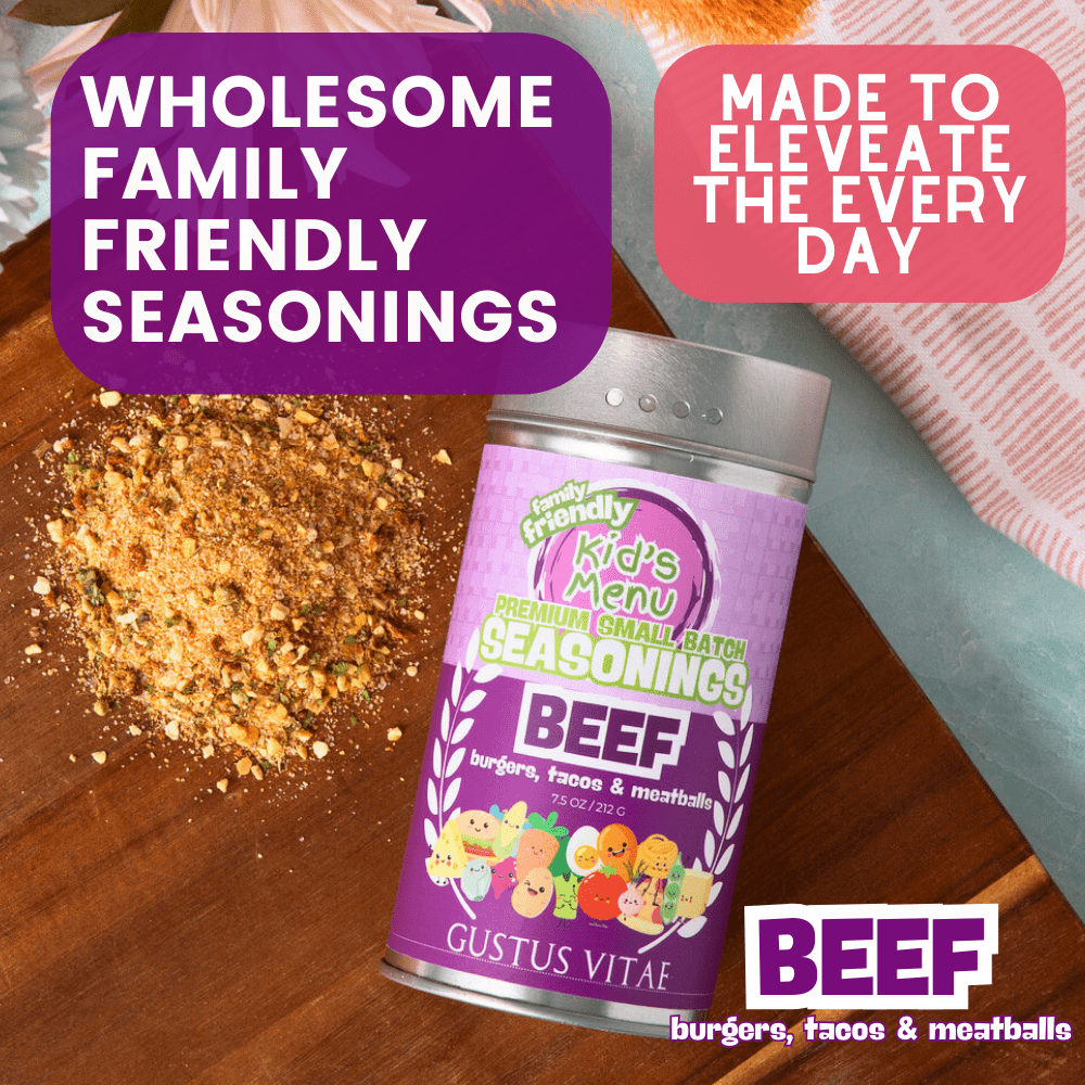 Our gourmet Beef: Burgers, Tacos, & Meatballs Seasoning is a delicious, wholesome blend made to elevate the everyday and create memories through food and flavor together, helping to nurture a lifelong love of healthy eating and real, good food.