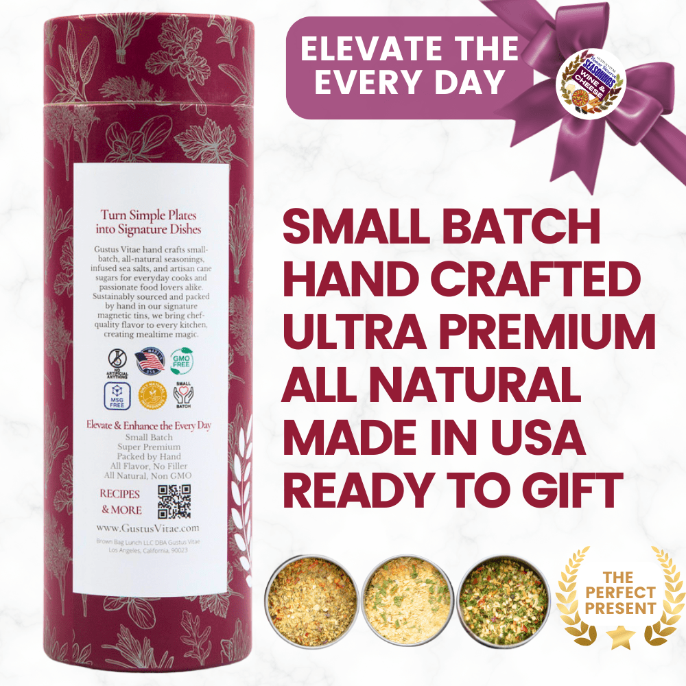 We craft each blend in limited batches using all-natural, non-GMO ingredients, layered for balance so flavors enhance rather than overpower. Dust over soft cheeses, fold into whipped ricotta or cream cheese, whisk into vinaigrettes, or drizzle with honey and olive oil for effortless board magic. Presented in a handsome, ready-to-gift tube with our signature magnetic tins (they stick right to the fridge), it’s a thoughtful, premium present your favorite hosts (and you) will reach for again and again.