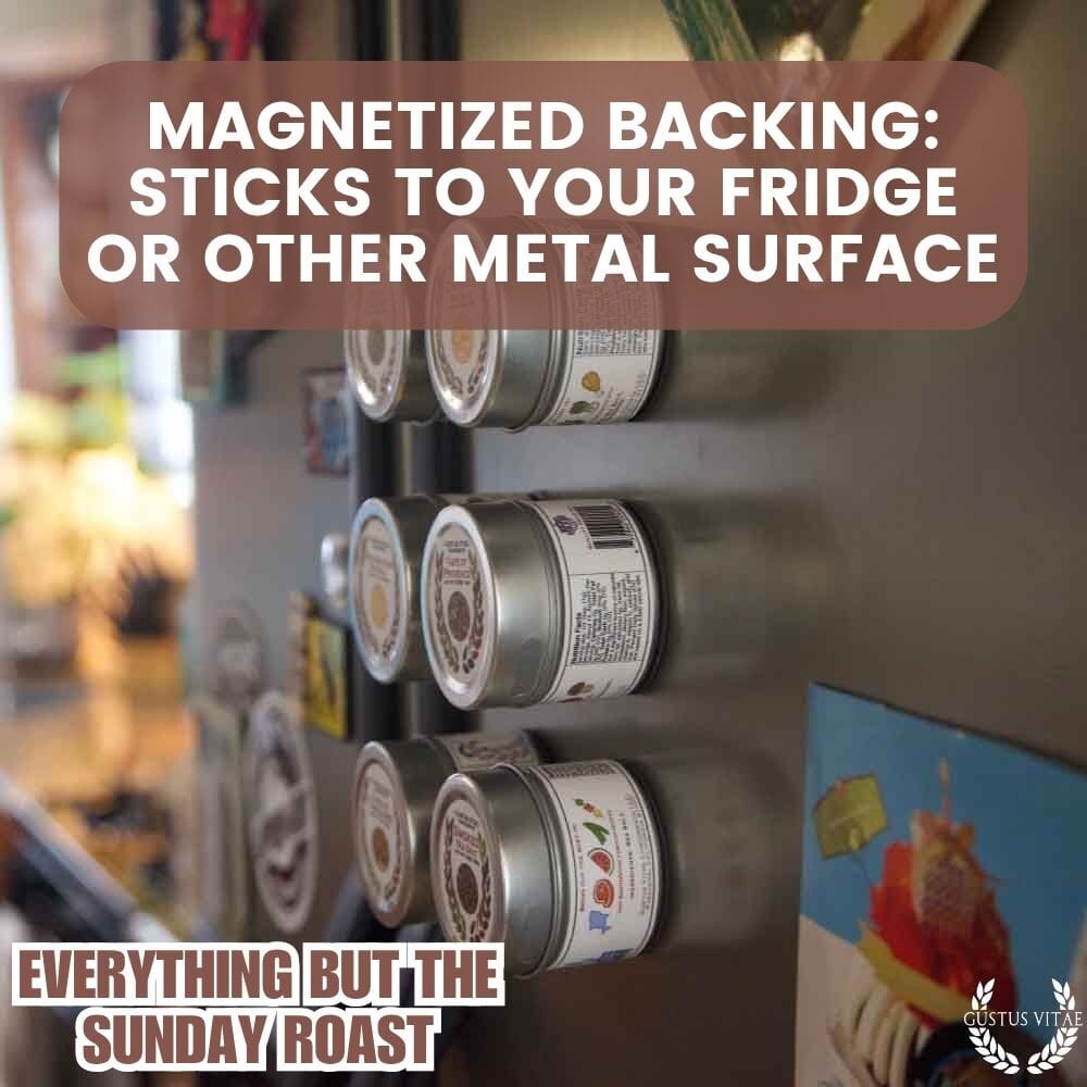 - Magnetized backing: sticks to your fridge or other metal surface.
