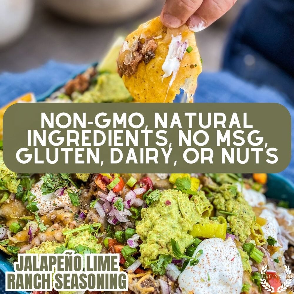 Made with the very best in all natural, non GMO ingredients, our Jalapeño Lime Ranch seasoning delivers serious flavor heat, and leaves behind the additives, MSG, stabilizers, and artificial colors and flavors that are all too common in ranch dressings.