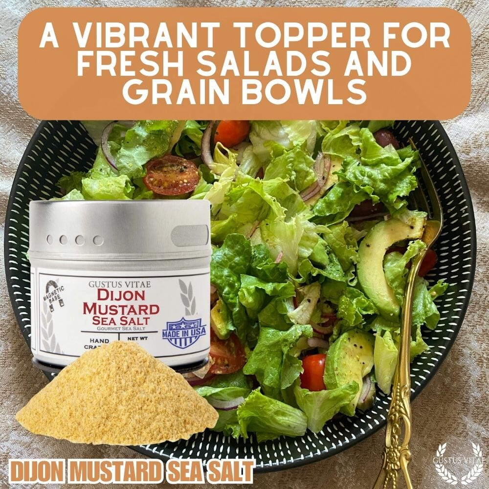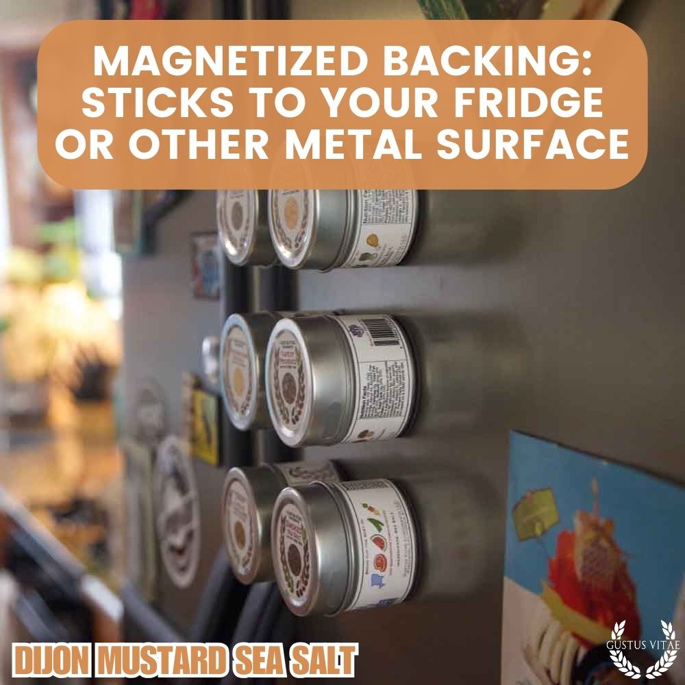 Our Dijon Mustard Sea Seat Salt brings all the wonderful crisp and tangy flavors of our favorite mustard to your table. Dijon’s naturally biting flavor is complimented by our California Sea Salt, carefully blended in small batches and hand-packed in our unique magnetic tins. All of the striking and subtle notes of Dijon are there, and its flavor brings out the best in pork dishes, roasted chicken, white fish, steamed leafy greens, a fresh salad, baked potatoes–anywhere you’d use mustard. Our favorite is sprinkling over hard boiled or deviled eggs for that finishing touch of flavor and a beautiful plating.