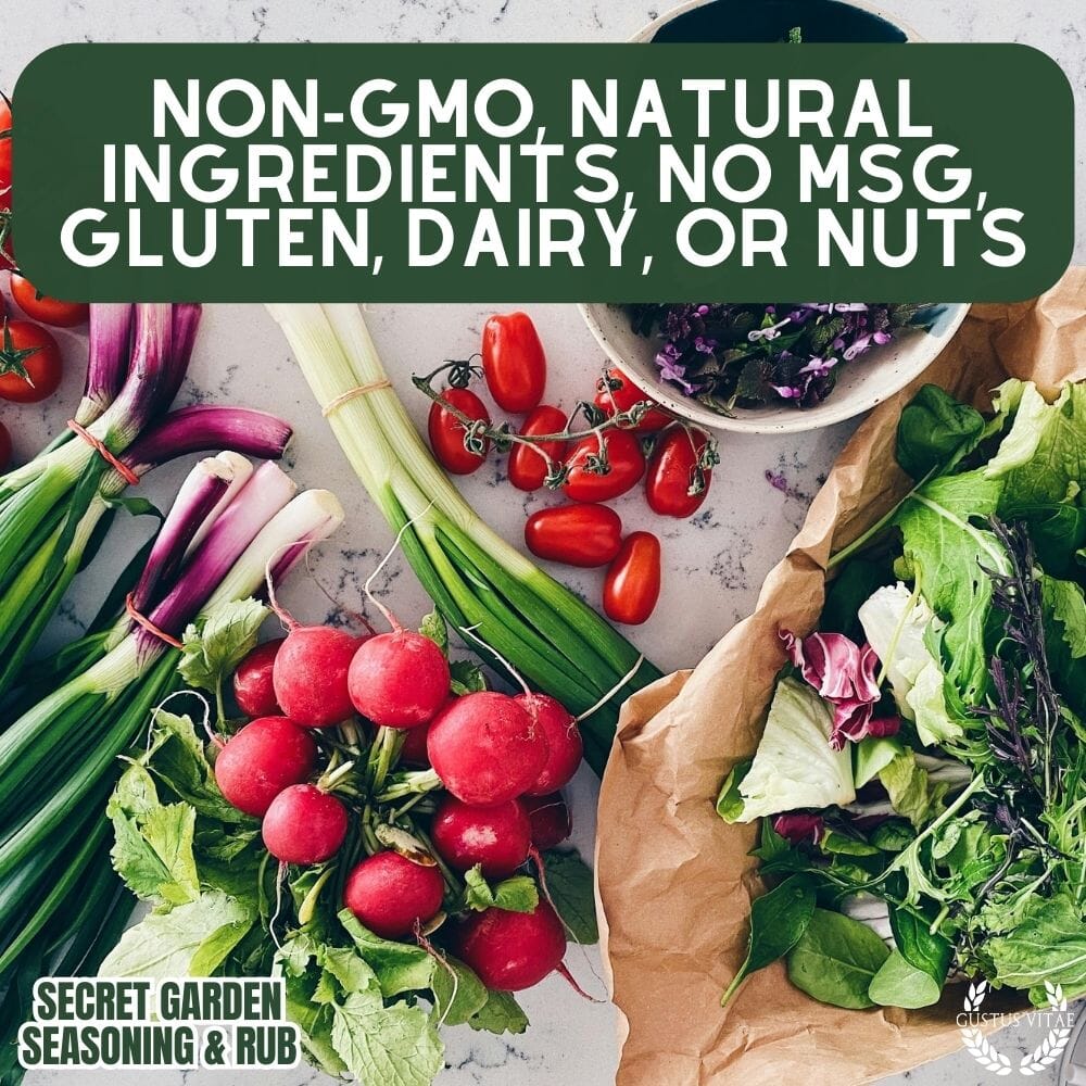 Savor the flavors of just-picked, garden fresh veggies with this gourmet all natural spice mix, crafted in small batches from only the best non GMO ingredients. Our Secret Garden Seasoning brings out the best in oven roasted veggies and weeknight favorites, and enjoy the seasoning on kebabs, steaks, wings, and whatever you're throwing on the BBQ.