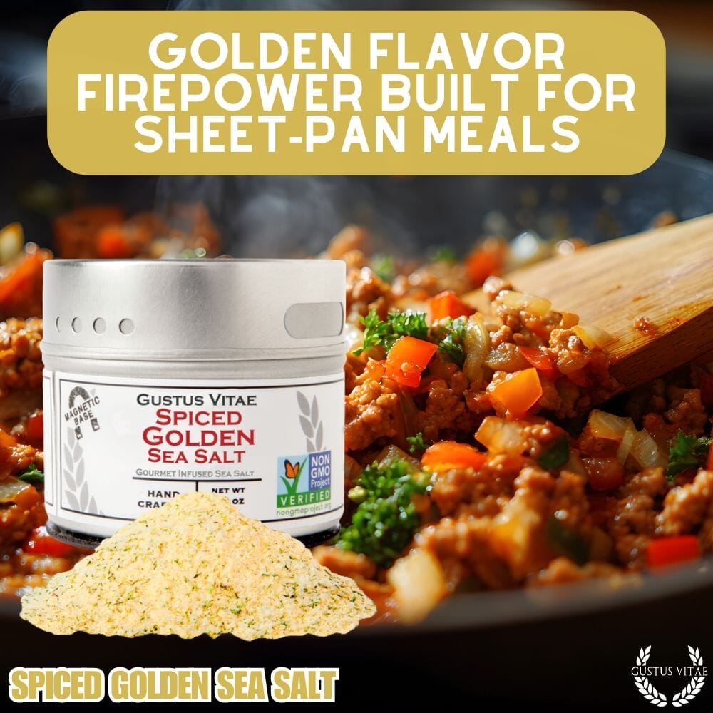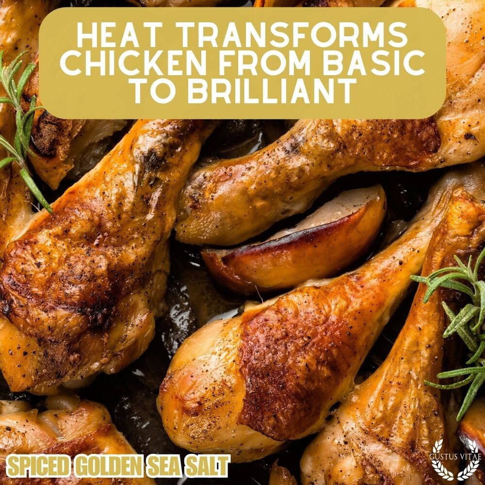 There's something special about this very unique sea salt. Our Spiced Golden Sea Salt gets it's dappled luster from a heaping of turmeric, one of the buzz word health foods that's actually got a lot of scientific backing behind it. We round this out with some honey for sweetness and chipotle for depth, as well as some choice herbs to complete the flavor profile. All in all, this sea salt is one that you'll be bringing out when what you're creating needs that extra zing - transforming the ordinary into exceptional. Give roast chicken the royal treatment (and royal coloring) with a healthy rub down before popping in the oven, or make your roasted root veggie pop by tossing them in this salt beforehand. Our favorite use: make show stopping roast butternut squash by slicing in half, drizzling with good extra virgin olive oil, a rub down with the Spiced Golden Sea Salt, and around 45 minutes in 350F oven. Wow.
