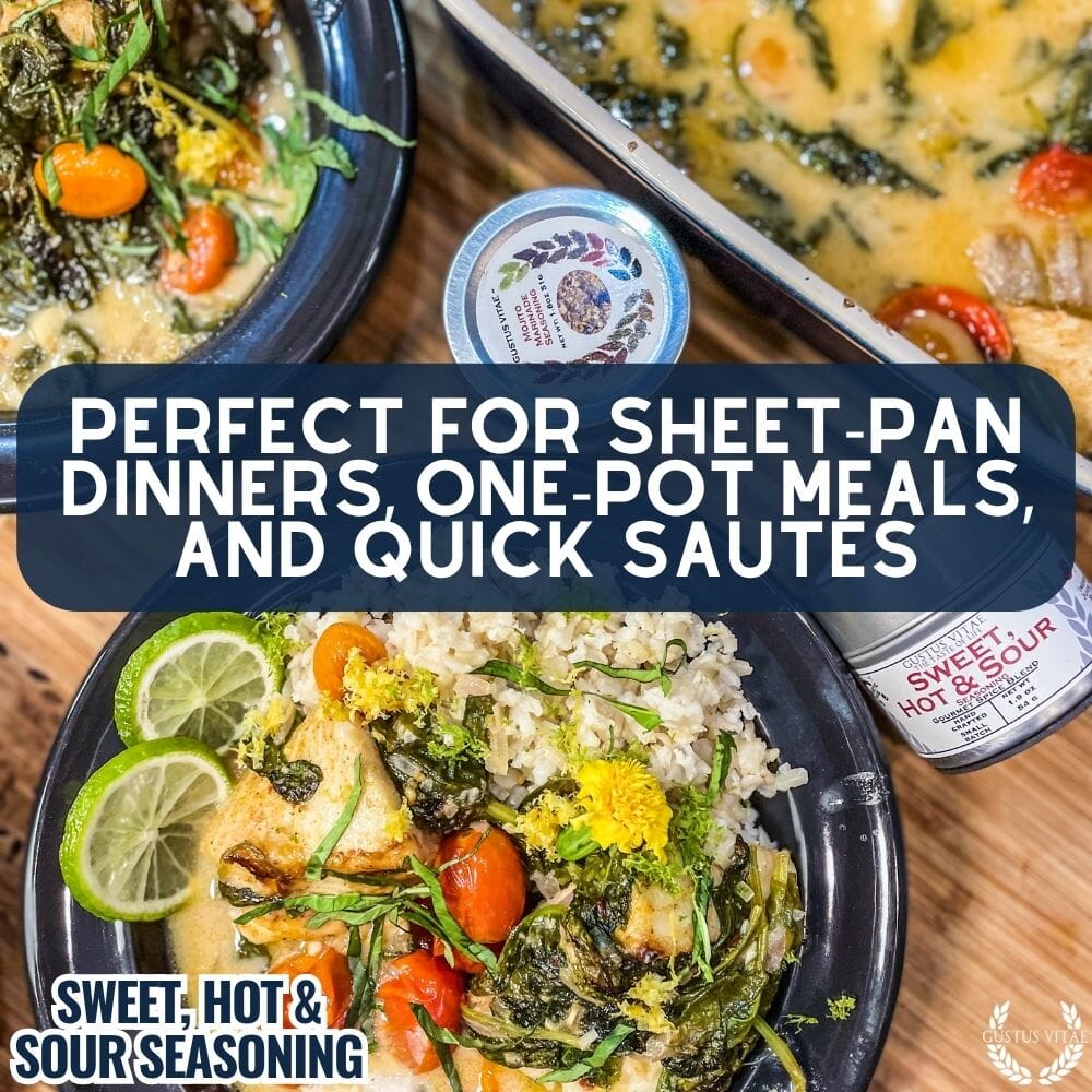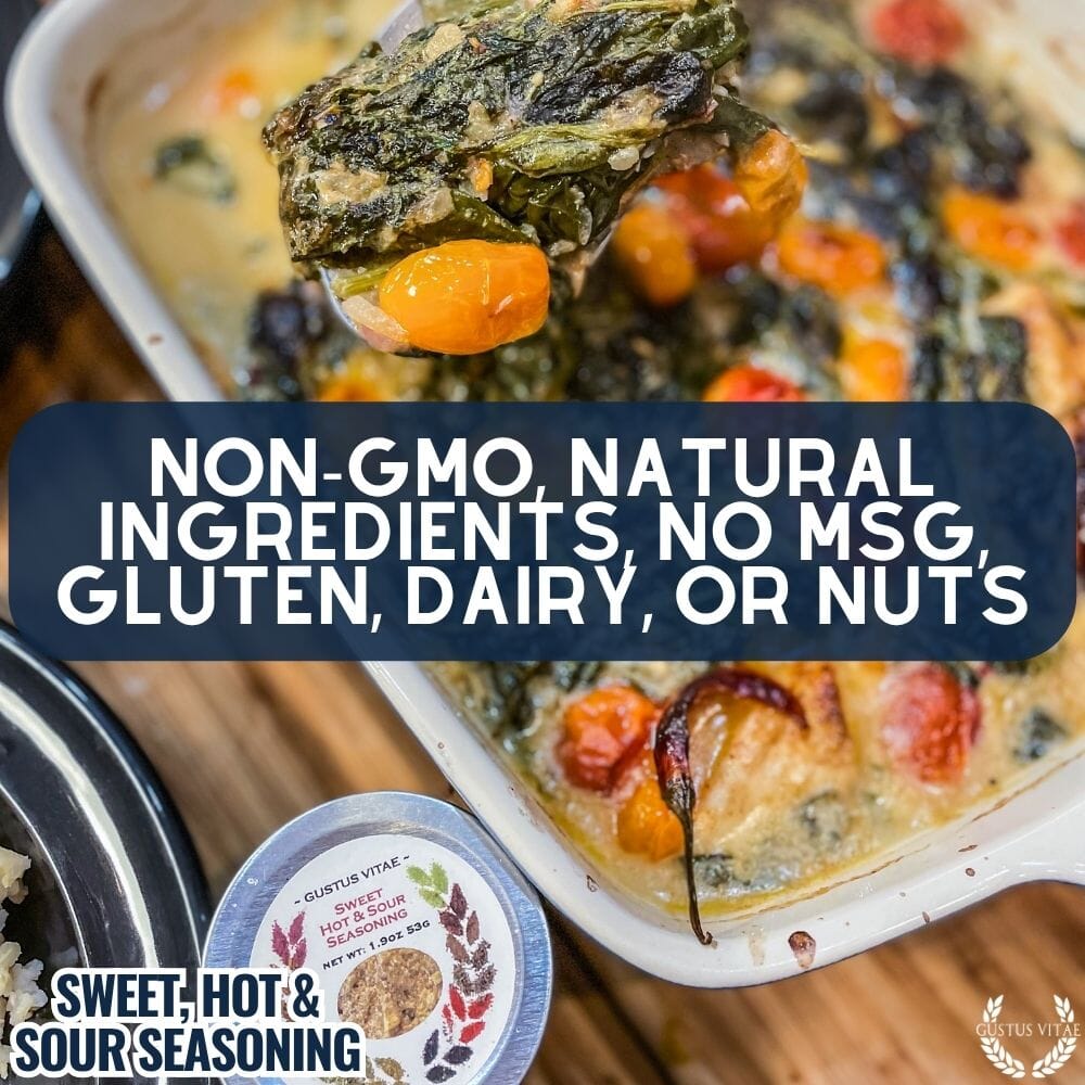 Easy to create, authentic and delicious Asian dishes are just a shake away with our gourmet Sweet, Hot, & Sour seasoning. Made with only the best in all natural, non GMO ingredients, this artisanal spice mix is bursting with fresh, bold, complex flavors that bring out the best in everything from soups to stir fry, and everything in between.