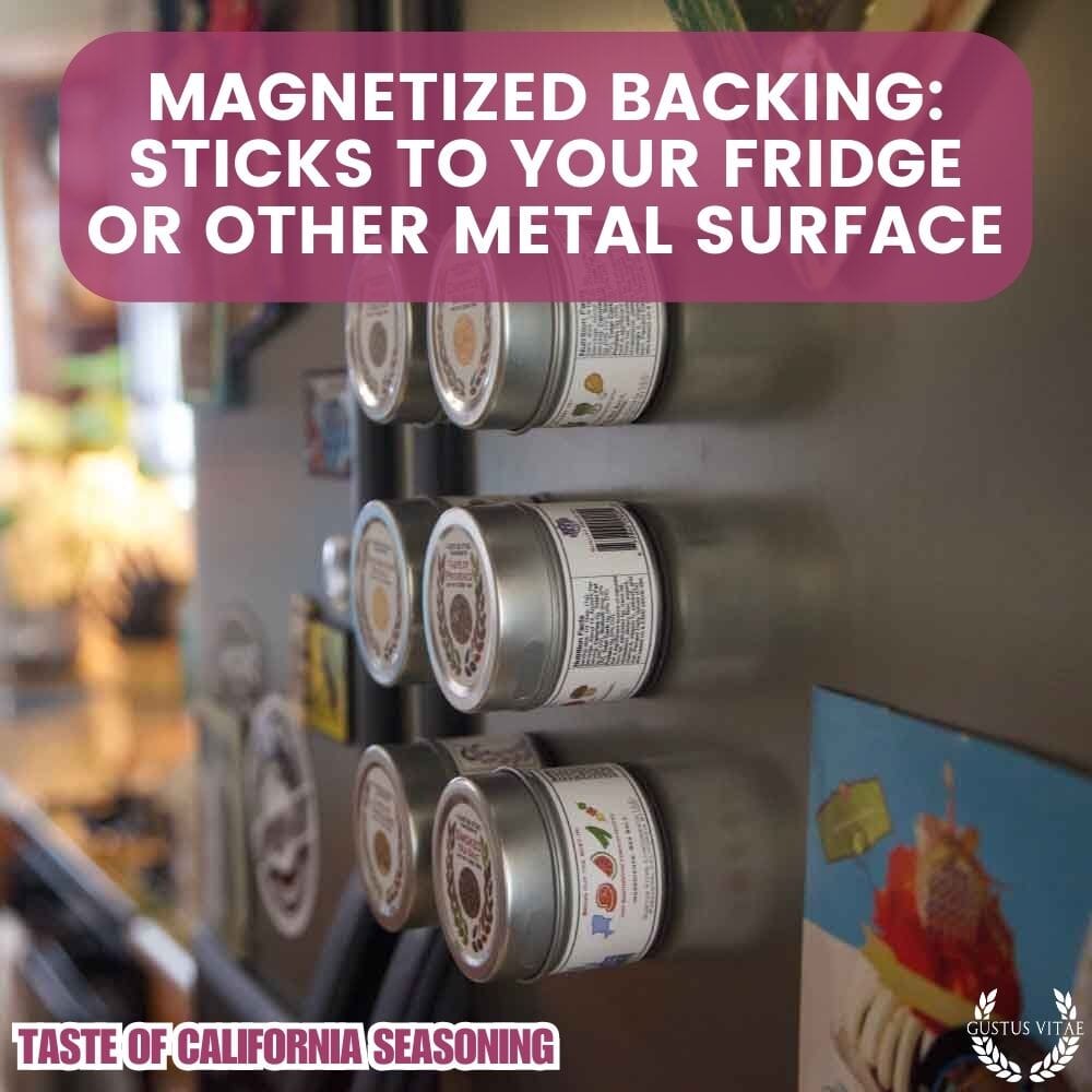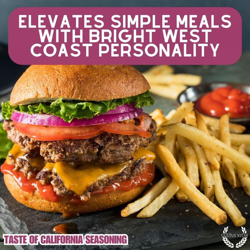 Give Taste of California a go for marinades and sauces, on meats and fish, on veggies and in yogurt or even blended into a dollop of coconut cream. Taste of California contains all-natural ingredients, handcrafted in small batches in the Golden State. It's non-GMO certified, not irradiated or treated with EtO ga,s and free of artificial colors and flavors.