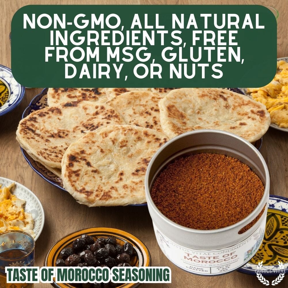 A spicy, robust blend of warm and complex flavors, the Taste of Morocco brings the flavors of the tajine to your kitchen. Use generously to impart authentic, rich flavor to meats like chicken, beef, lamb and pork, or breath life in classics like hummus, couscous, lentils and bean dishes. Taste of Morocco is also wonderful as a marinade or sauce: combine a generous helping with a cup of sour cream, coconut cream, cream cheese, or mayo for an instant dipping sauce.