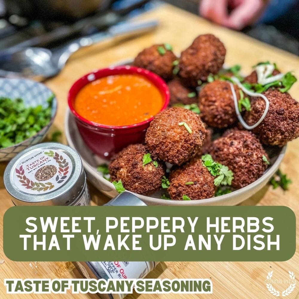 A fragrant blend of rich, sweet, and peppery flavors, our Taste of Tuscany brings the flavors of Italy to your kitchen. Apply the herbs liberally to impart a bold Italian flavor to pastas, poultry, cooked vegetables, salads, and fish. The Taste of Tuscany's slightly varied consistency and bright aroma make it the perfect final touch for bruschetta and crostini while brightening the dish as a whole.